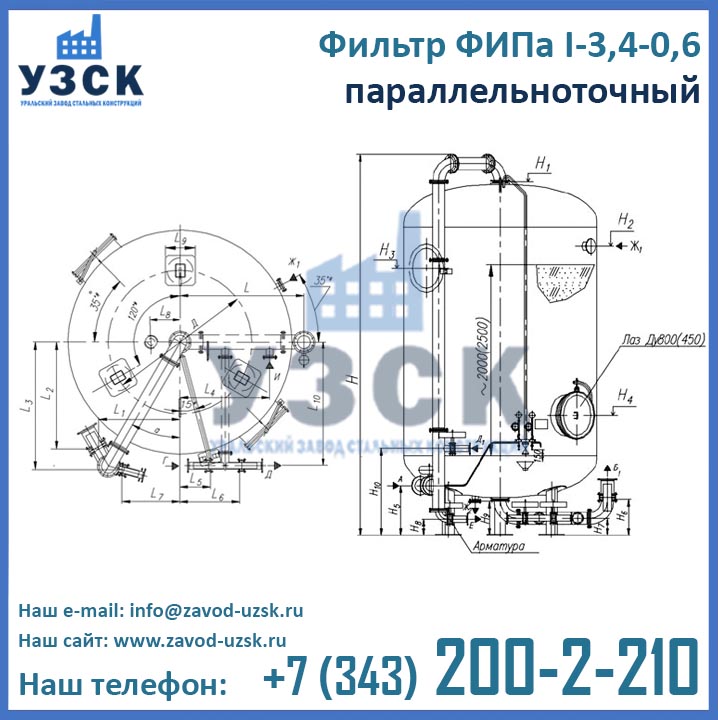 Производитель фильтров ФИПа параллельно-точных завод УЗСК предлагает два варианта комплектации ФИПаI 3,4-0,6 в Атырау: