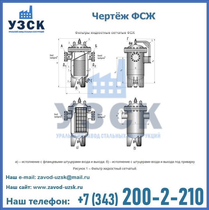 Очистку перекачиваемых жидкостей на предприятиях нефтяной, пищевой, горнорудной, фармацевтической и других отраслей промышленности эффективно выполнять с помощью жидкостного сетчатого фильтра — емкостное оборудование цилиндрической формы со съемной крышкой и элементом фильтрации внутри. Оснащенные им всасывающие линии насосных станций и установок защищены от проникновения твердых частиц в функциональные узлы гидравлической системы. Оборудование служит для перекачивания токсичных, агрессивных и иных эмульсий, суспензий, жидкостей. Купить фильтр сетчатый жидкостный ФСЖ в Атырау с гарантией производителя предлагает «Уральский завод стальных конструкций». Мы выполняем проектирование и изготовление ФСЖ по индивидуальным требованиям (климатическая зона, транспортируемая жидкость).
