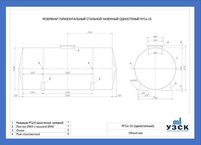 РГСн-15: горизонтальный резервуар одностенный наземного расположения;